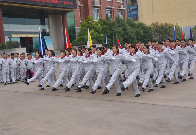 為慶祝中華人民共和國成立67周年,進一步強化員工組織紀律性和團隊精神。9月30日上午,集團公司在嵩基水泥迎賓廣場舉行軍事會操活動。